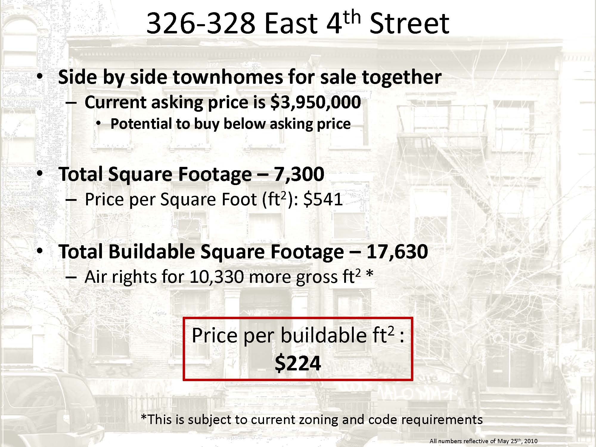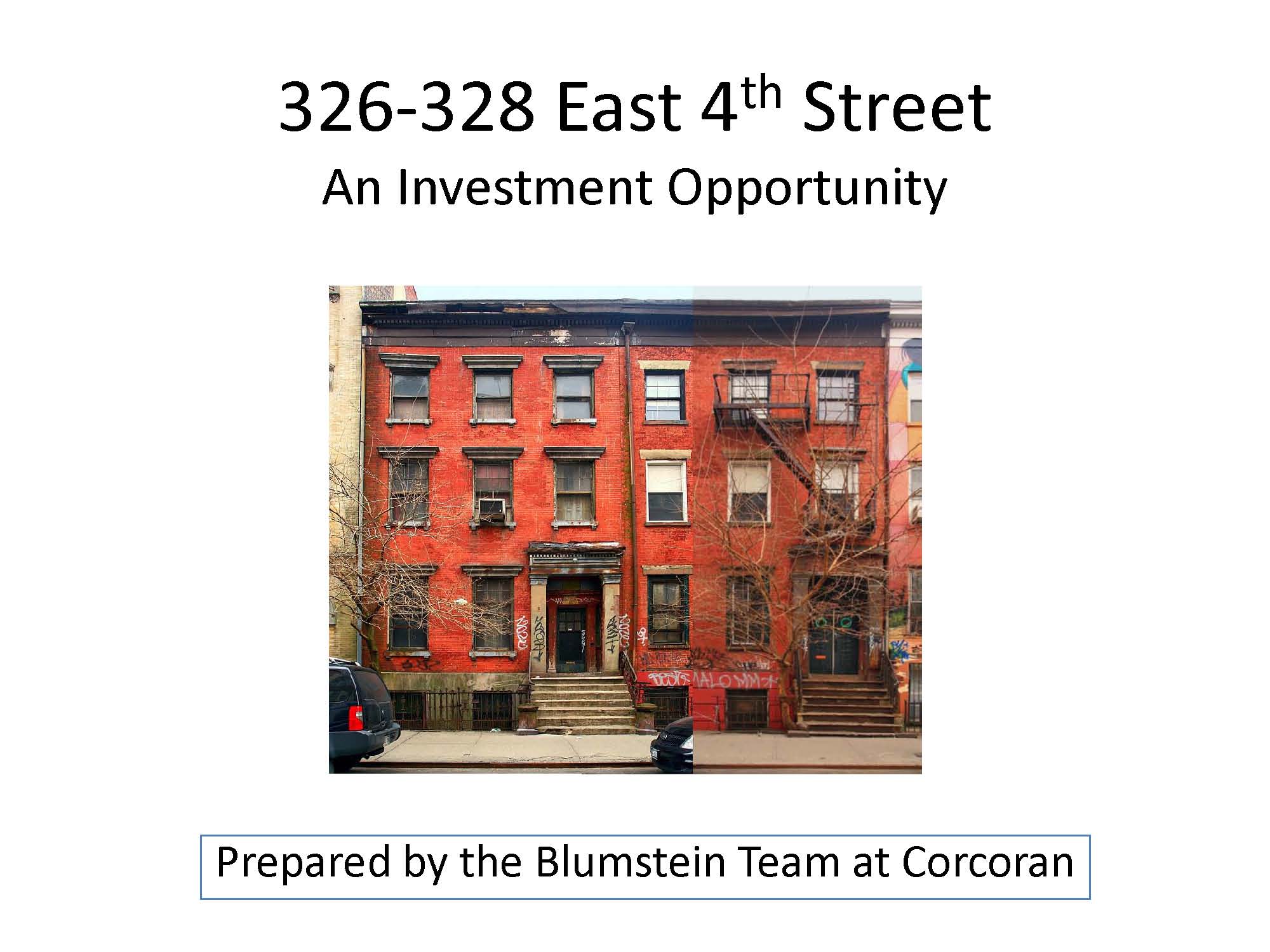 Check out the following slides regarding the property. You can download the full pdf here: Alphabet City Investment Opportunity – 326-328 East 4th